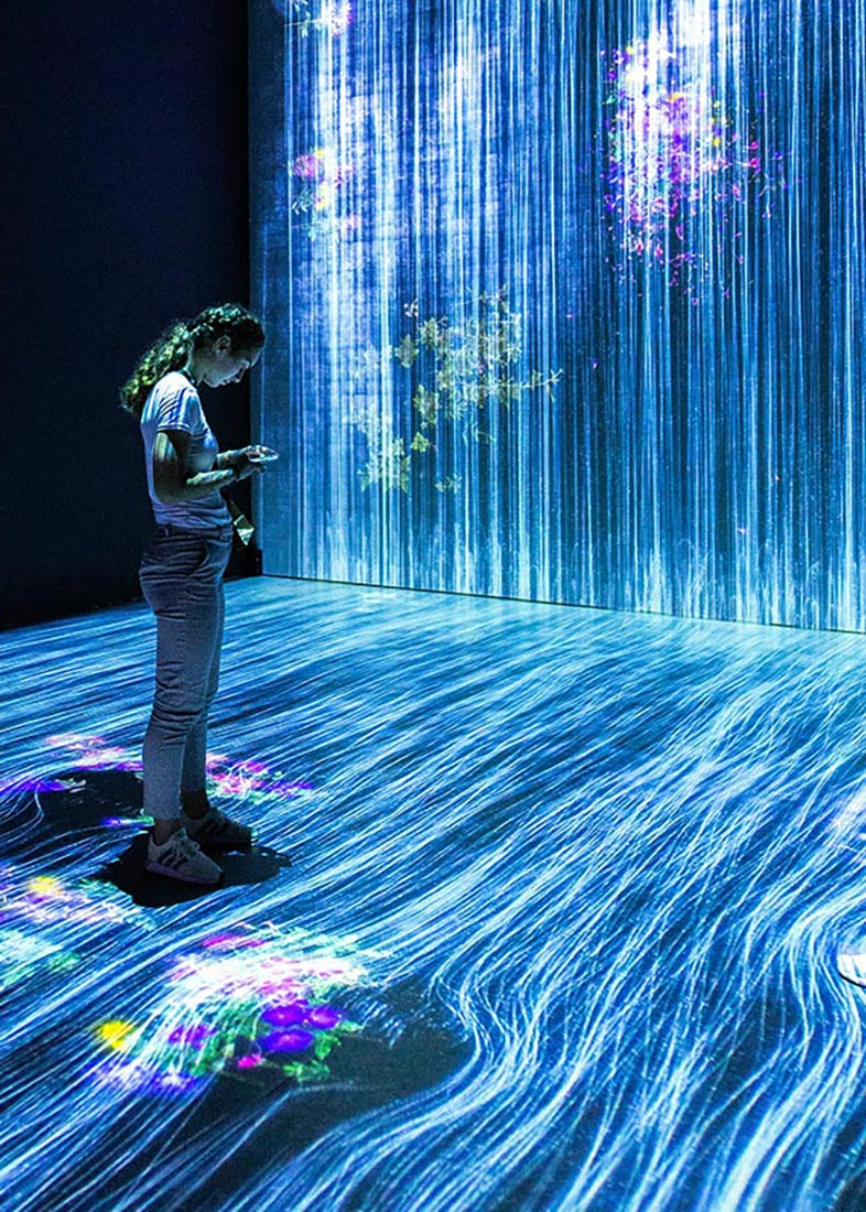 AI representation person standing in a cascade fo code 1100px